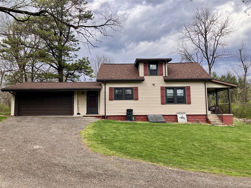 High efficiency furnace, central air, covered porch, two car garage with opener, washer/dryer hook-ups, large yard, separate dining area, and an unfinished basement.