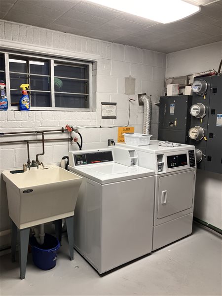 Apartment is equipped with electric range, fridge, and through the wall AC. Gas heat, water, and sewage is paid for by landlord. Coin operated laundry located in the basement along with storage locker at no additional cost. Tenant can add additional window AC.